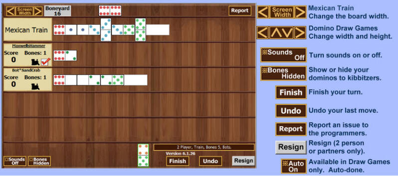 The one exception is that in Mexican Train 4 Player, you can only choose 5 or 6 bones at the start, because there are not enough bones for 4 Player Train. - Number of players including 2, 3, 4 (cutthroat or partners).